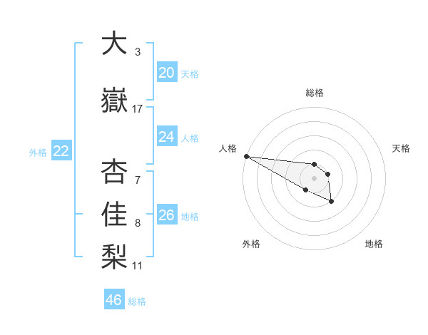 大嶽 杏佳梨さんを姓名の画数から五運を鑑定