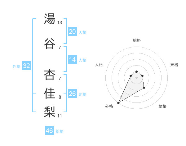 湯谷 杏佳梨さんを姓名の画数から五運を鑑定