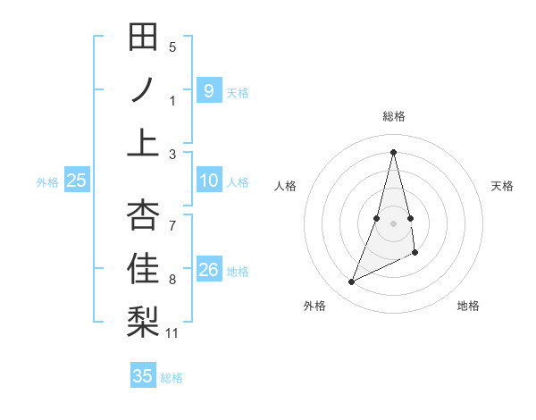 田ノ上 杏佳梨さんの総格は35画の4点!