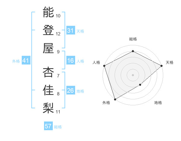 能登屋 杏佳梨さんを姓名の画数から五運を鑑定
