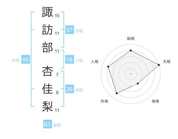 諏訪部 杏佳梨さんの天格は37画の5点!