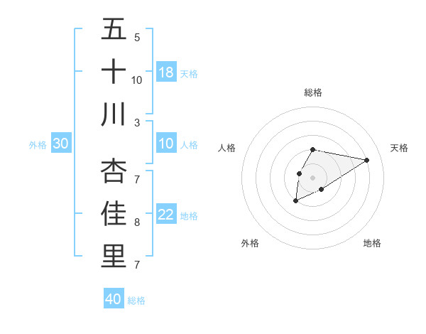 五十川 杏佳里さんを姓名の画数から五運を鑑定