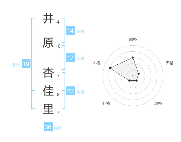 井原 杏佳里さんを姓名の画数から五運を鑑定