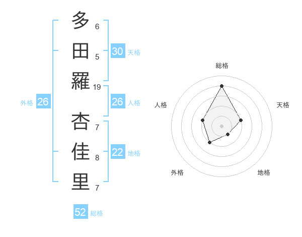 多田羅 杏佳里さんを姓名の画数から五運を鑑定