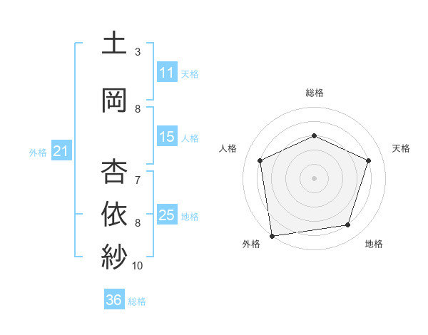 土岡 杏依紗さんを姓名の画数から五運を鑑定