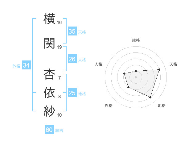 横関 杏依紗さんを姓名の画数から五運を鑑定
