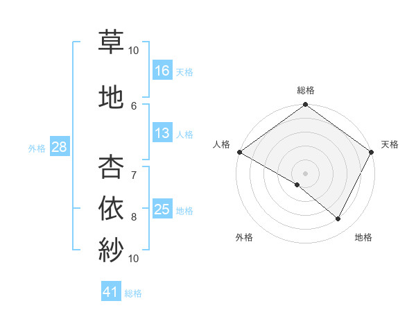 草地 杏依紗さんを姓名の画数から五運を鑑定