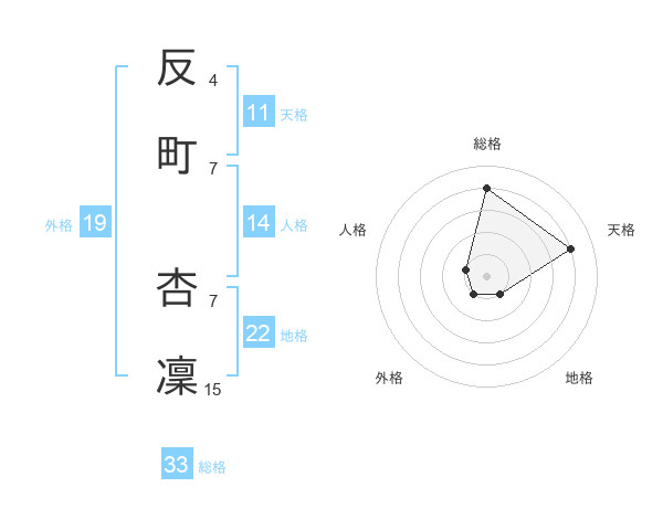 反町 杏凜さんの総格は33画の4点!