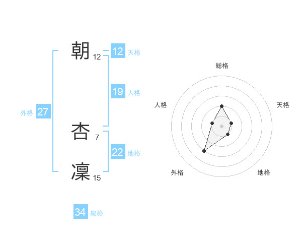 朝 杏凜さんの総格は34画の2点!