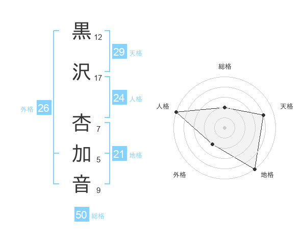 黒沢 杏加音さんの総格は50画の2点!