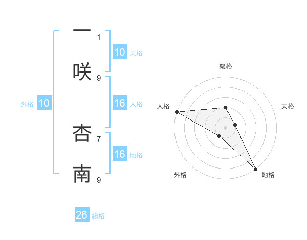 一咲 杏南さんの総格は26画の2点!