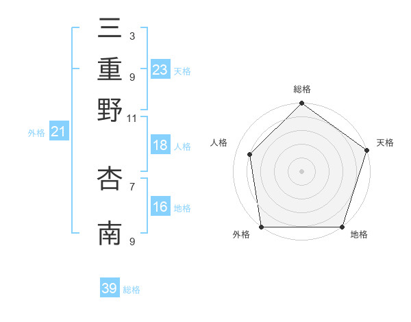 三重野 杏南さんを姓名の画数から五運を鑑定