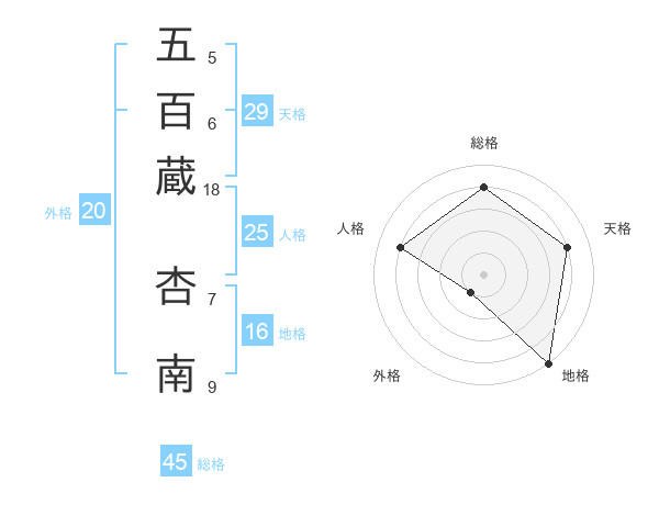 五百蔵 杏南さんの総格は45画の4点!