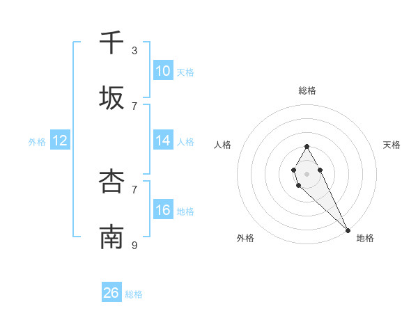 千坂 杏南さんを姓名の画数から五運を鑑定