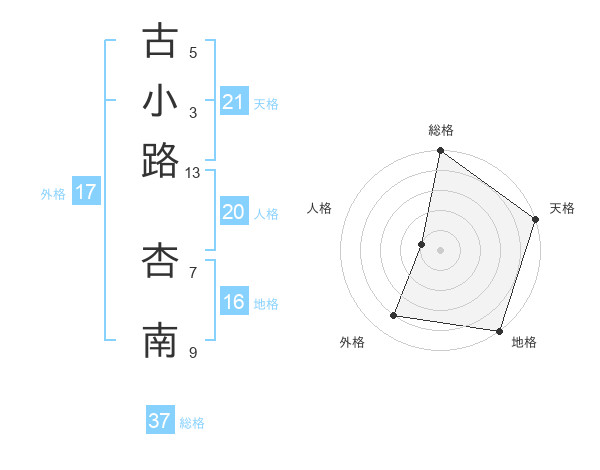 古小路 杏南さんを姓名の画数から五運を鑑定