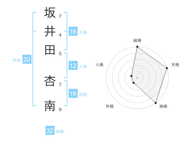 坂井田 杏南さんを姓名の画数から五運を鑑定