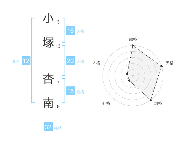 小塚 杏南さんを姓名の画数から五運を鑑定