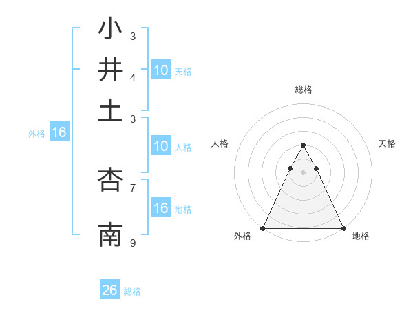 小井土 杏南さんを姓名の画数から五運を鑑定