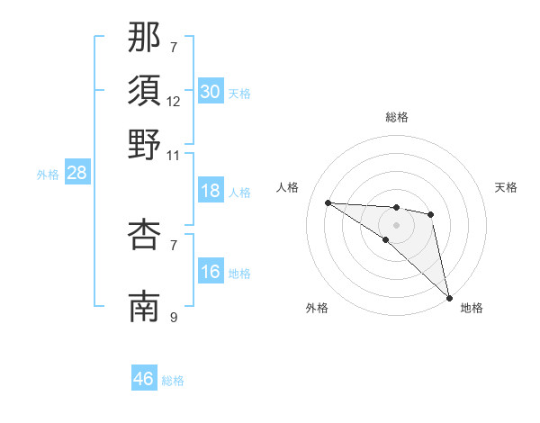那須野 杏南さんを姓名の画数から五運を鑑定