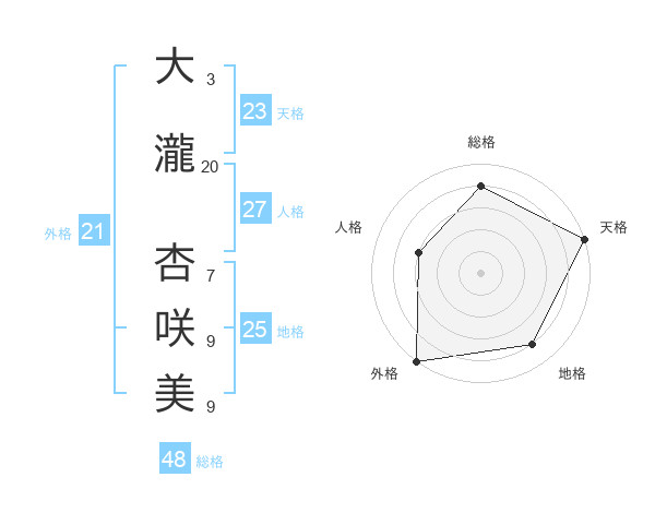 大瀧 杏咲美さんを姓名の画数から五運を鑑定
