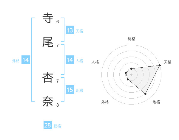 寺尾 杏奈さんの天格は13画の5点!