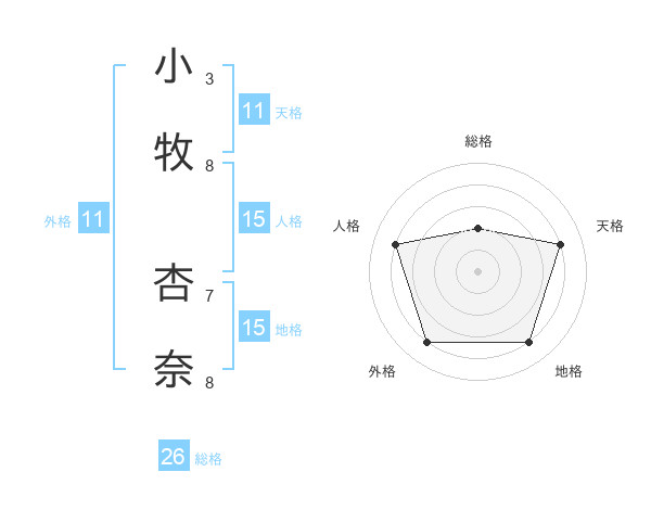 小牧 杏奈さんを姓名の画数から五運を鑑定