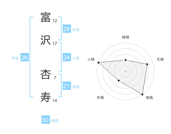 富沢 杏寿さんの総格は50画の2点!