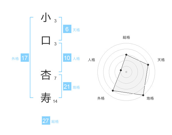 小口 杏寿さんを姓名の画数から五運を鑑定
