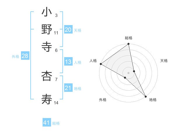 小野寺 杏寿さんの天格は20画の1点!