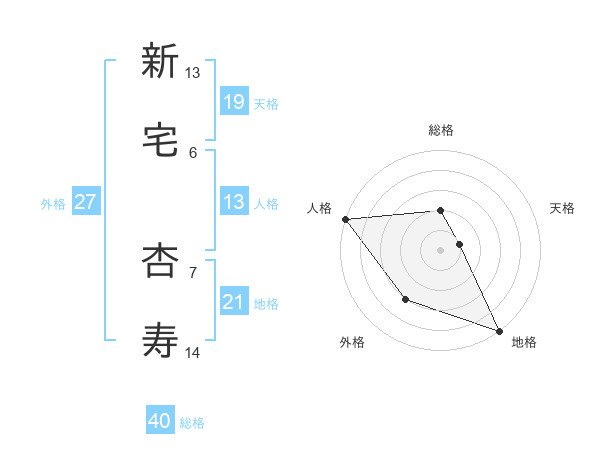 新宅 杏寿さんを姓名の画数から五運を鑑定
