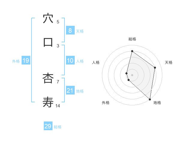 穴口 杏寿さんを姓名の画数から五運を鑑定
