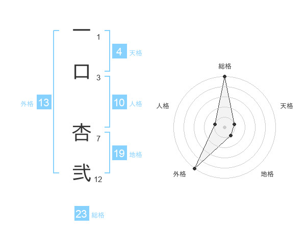 一口 杏弐さんを姓名の画数から五運を鑑定