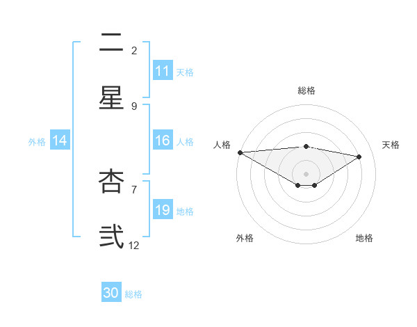二星 杏弐さんを姓名の画数から五運を鑑定