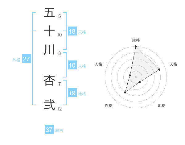五十川 杏弐さんを姓名の画数から五運を鑑定