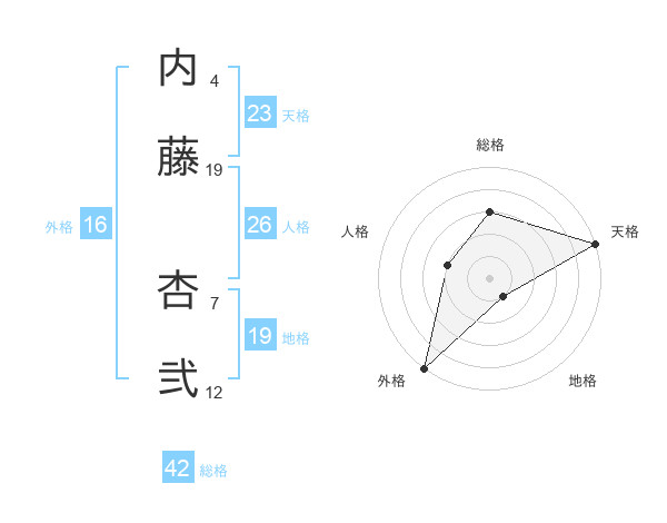 内藤 杏弐さんを姓名の画数から五運を鑑定