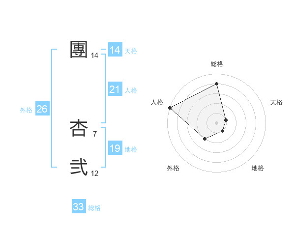 團 杏弐さんの総格は33画の4点!