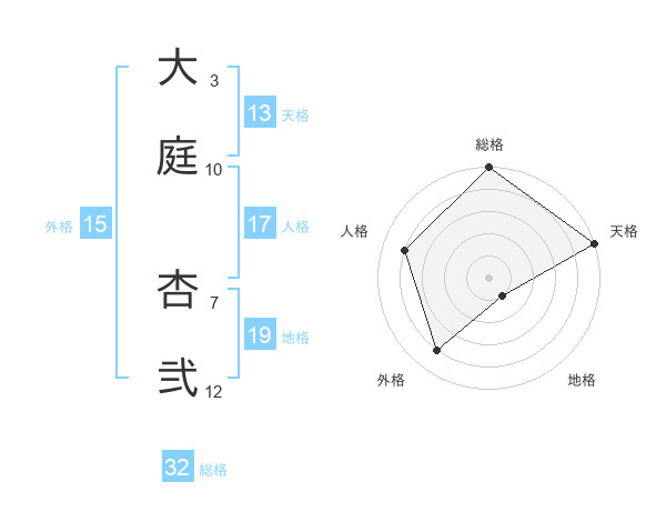大庭 杏弐さんの総格は32画の5点!