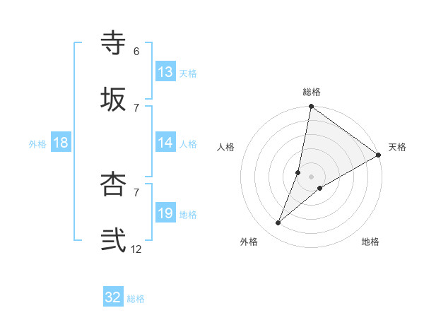 寺坂 杏弐さんを姓名の画数から五運を鑑定