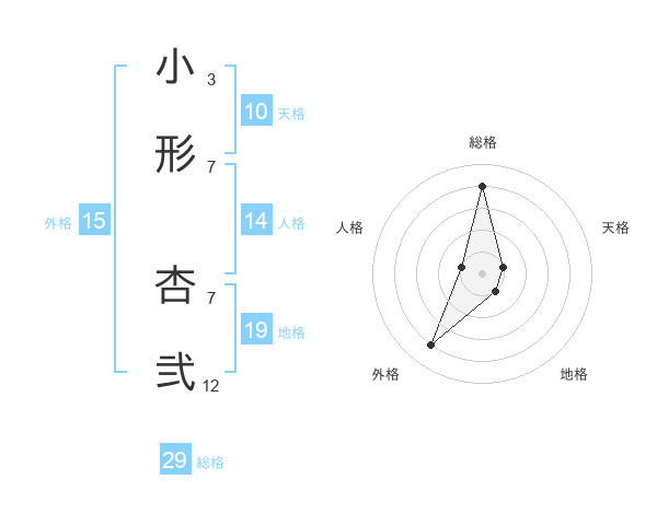 小形 杏弐さんを姓名の画数から五運を鑑定