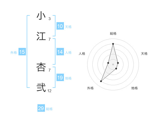 小江 杏弐さんを姓名の画数から五運を鑑定