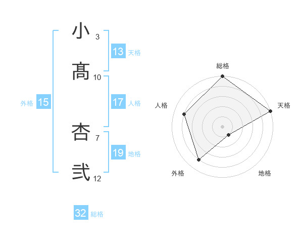 小髙 杏弐さんを姓名の画数から五運を鑑定