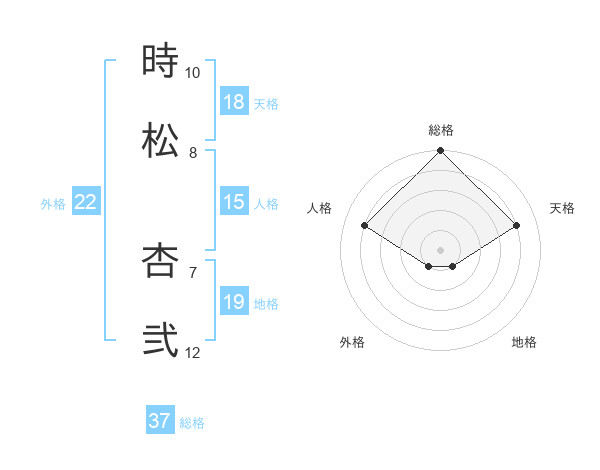 時松 杏弐さんを姓名の画数から五運を鑑定