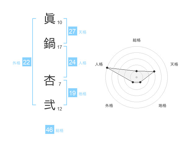 眞鍋 杏弐さんを姓名の画数から五運を鑑定