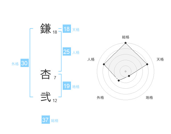 鎌 杏弐さんの総格は37画の5点!