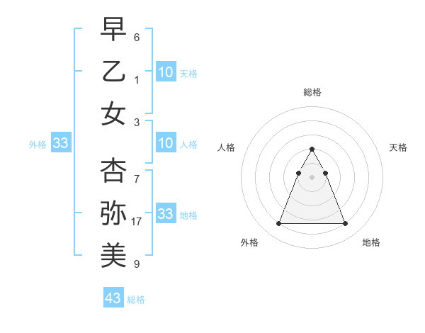 早乙女 杏弥美さんの総格は43画の2点