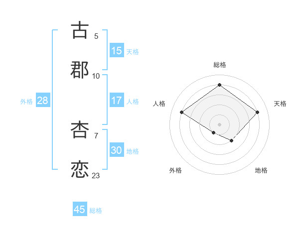 古郡 杏恋さんを姓名の画数から五運を鑑定