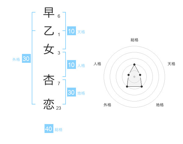 早乙女 杏恋さんの総格は40画の2点