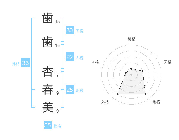 歯歯 杏春美さんの総格は55画の1点!