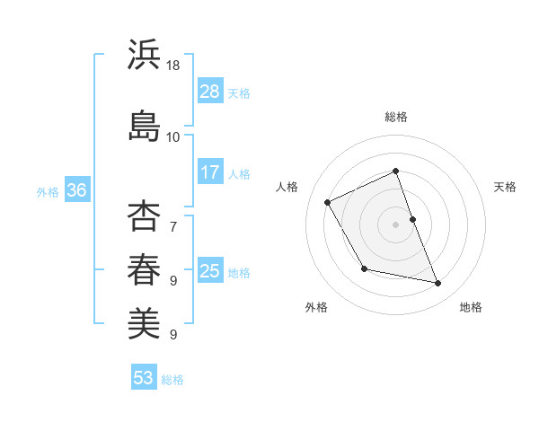 浜島 杏春美さんを姓名の画数から五運を鑑定