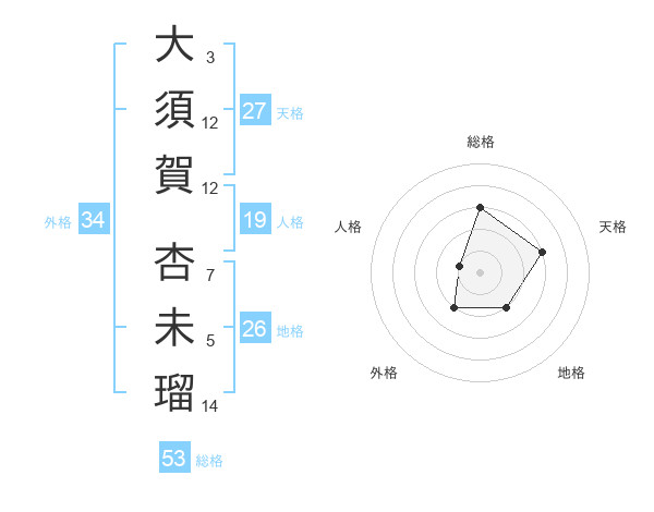 大須賀 杏未瑠さんを姓名の画数から五運を鑑定